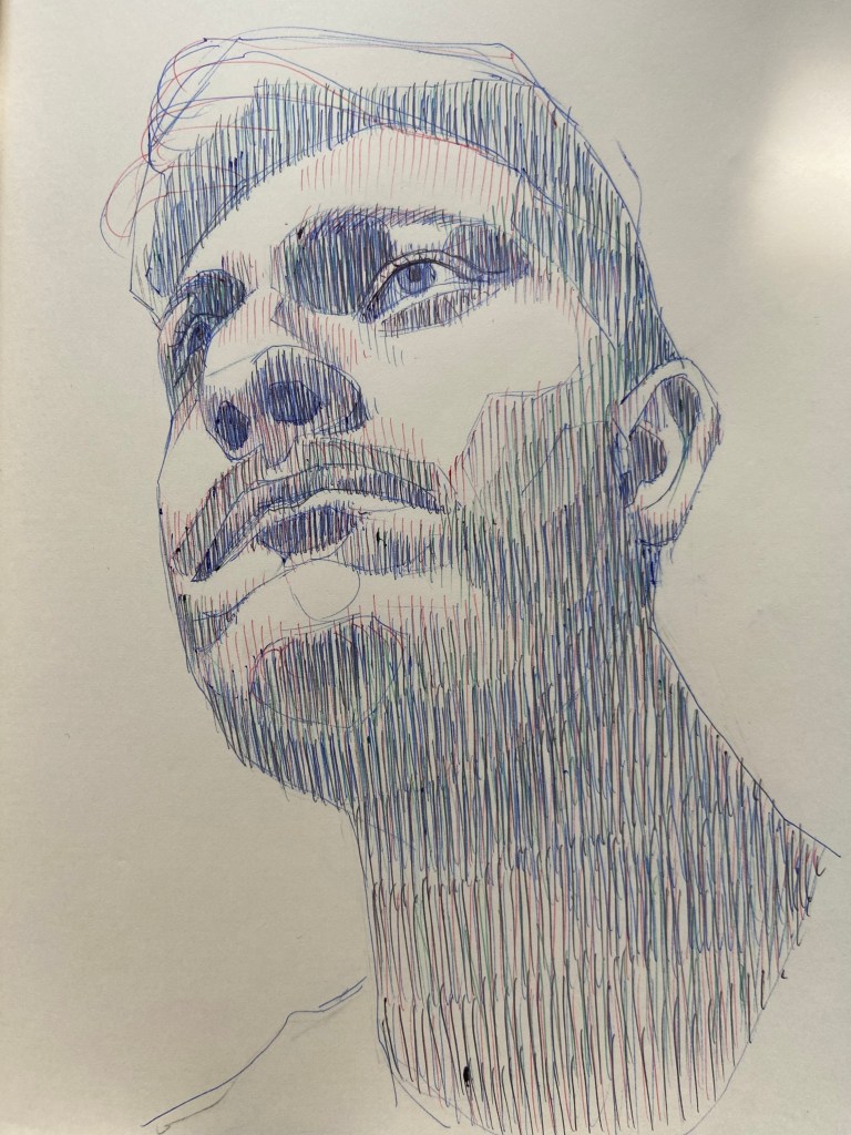 I picked up a new 4-colour ballpoint pen from the Japan Centre in London when I was in the city a couple of weeks ago for a hospital appointment. I obviously had to try it out on a portrait, so I drew Alexander from the Museum by Sktchy app.