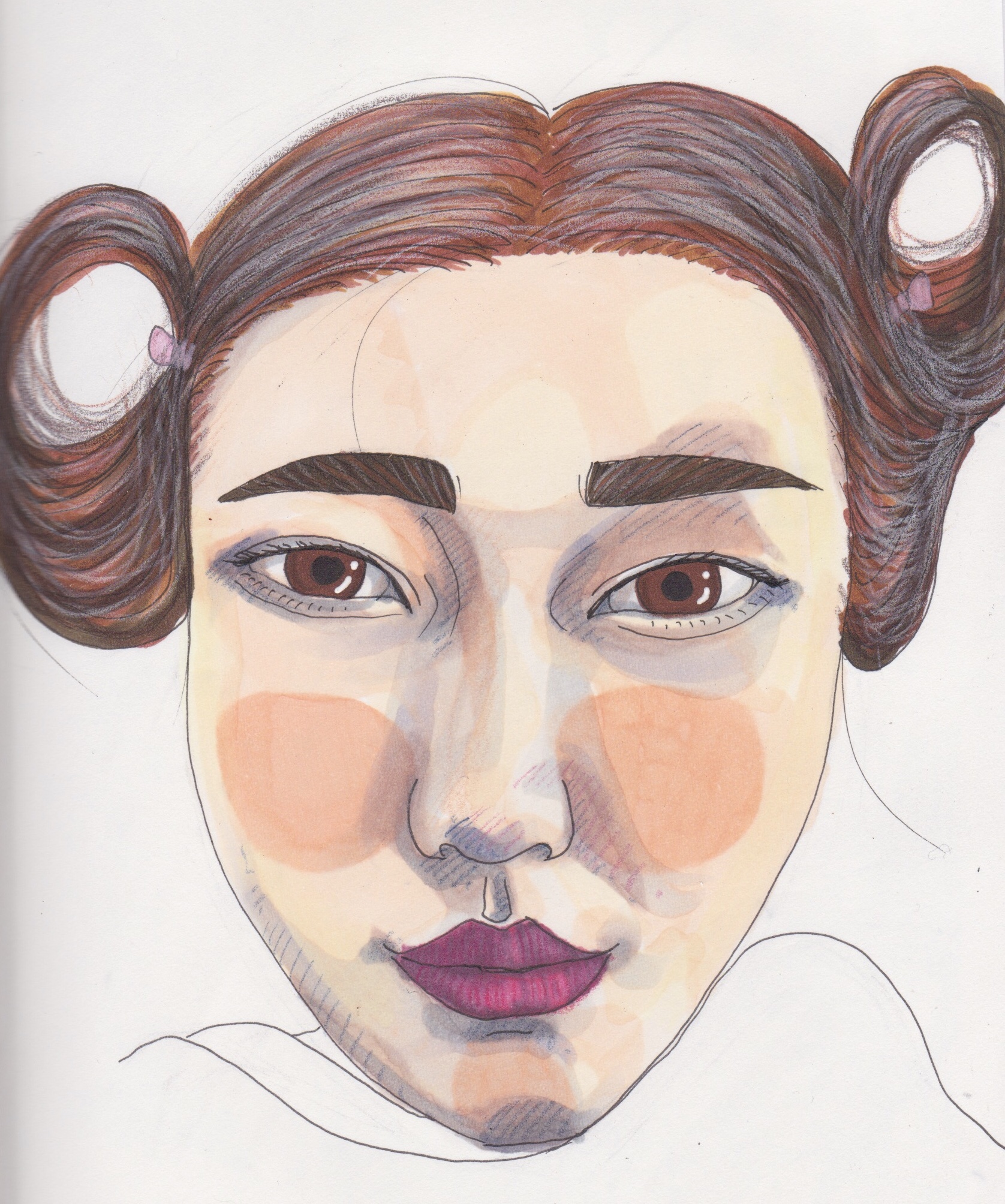 This is a portrait of Sktchy muse Majo drawn in my Midori Cotton sketchbook with Copic markers and Prismacolor coloured pencils.